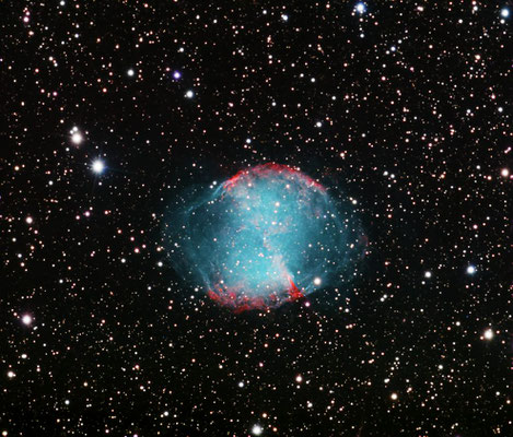 M27 o nebulosa manubrio: telescopio da 1000 x200 con 190 scatti light 30 dark 30 flat e30 bias elaborata con pixinsight.